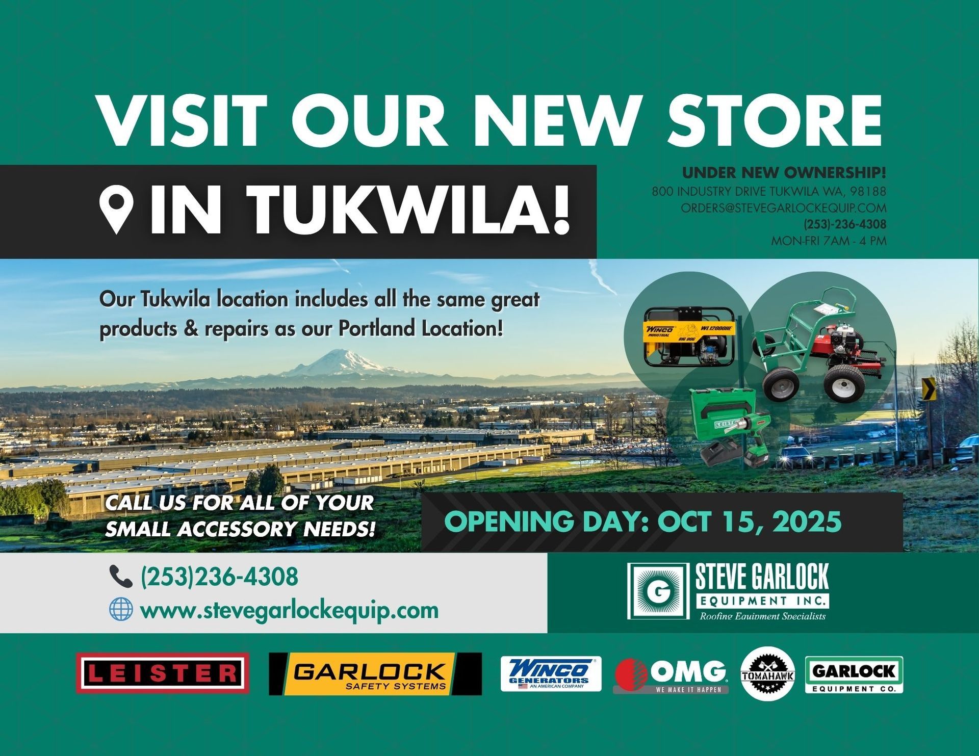 Serving the Pacific NW and the western states Steve Garlock Equipment offers new equipment, used roofing equipment, rental equipment and a full service Leister repair shop to meet our customers needs. We provide commercial rentals on Leister automatic and handheld tools as well as generators, powered tearoff tools, cutters and other deck equipment. Contact us for the equipment you need to get the job done!