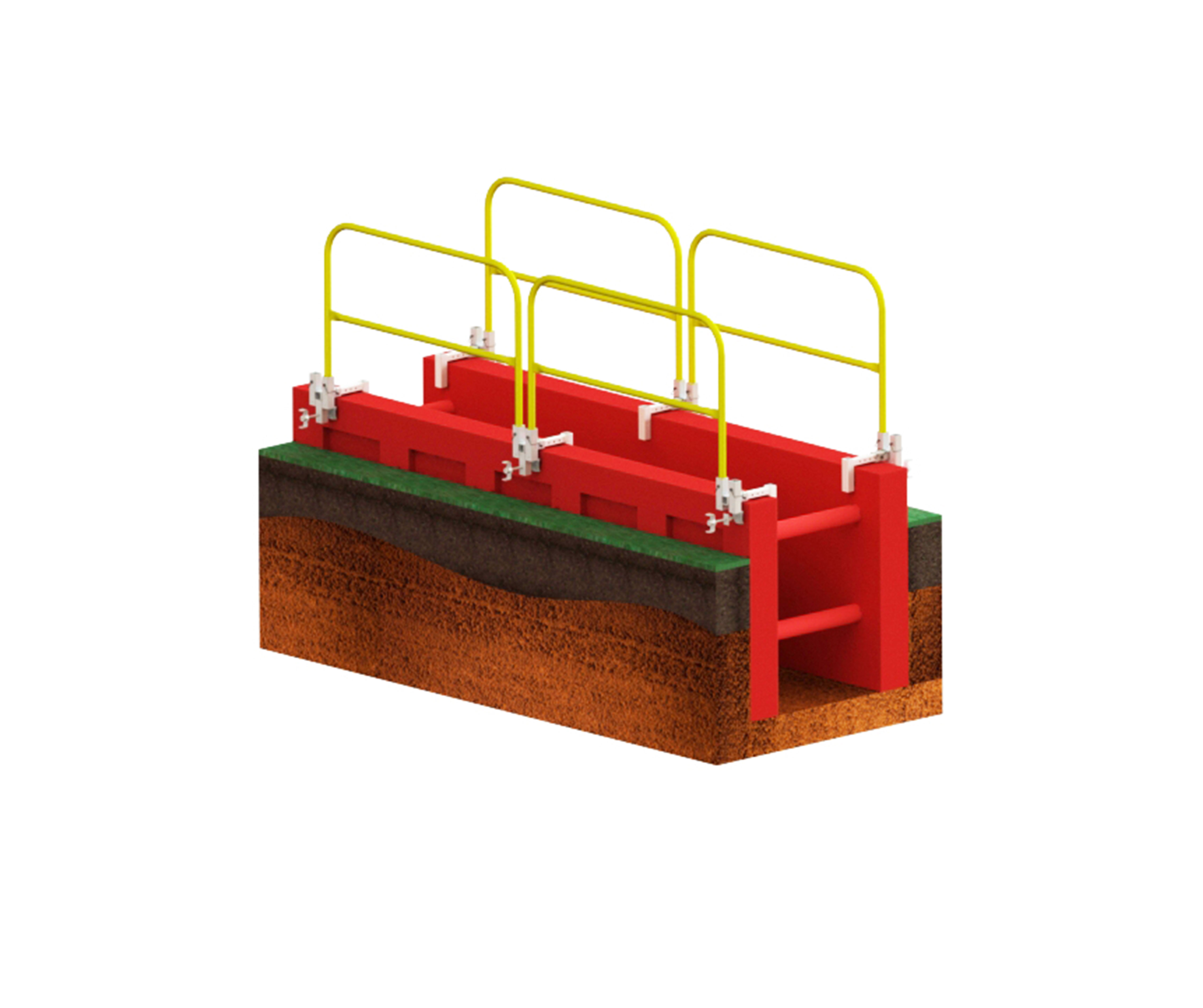 Trench boxes provide safety for workers down in the trench. What about workers working near the fall edge of the trench? For above-ground fall prevention rely on Garlock Safety System’s heavy-duty trench box clamp and RailGuard 200™ railing.