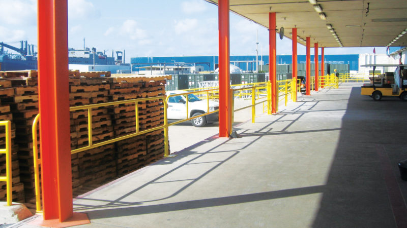 OSHA fall prevention solution with bases permanently anchored