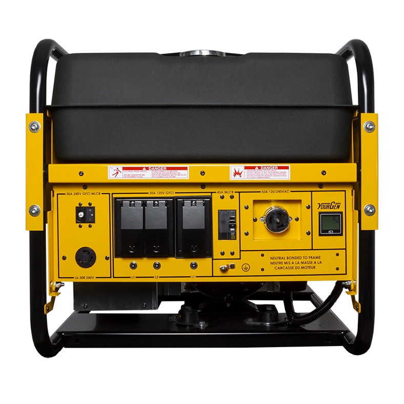 WL12000HE-03/C The same powerful generator has been engineered with our new YourGen meter and has also received CSA approval! The receptacle package on this unit includes our popular 50A twist lock plug. Honda GX630 Engine You expect the best, you get the best. The Honda GX630 is betterthan ever. Including improved adaptability, quieter operation, and greater fuel efficiency. YourGen Meter LED meter displaying hours, RPMs, voltage, and frequency readings. Verifies the load balance with a load bar display. Warnings when a parameter is outside of normal range and when an oil change is needed. Low Oil Protection In the event of low-oil level, the engine will shut down, which will protect the engine from damage. Powder Coat Paint Incredibly strong finish. Sturdy Wrap Around Cradle 13 Gauge, welded, tubular steel provides industrial strength support. 15 Gallon Fuel Tank EPA Approved steel fuel tank designed to eliminate hydrocarbon emissions. Premium Circuit Breakers Provides a clear and instant indication of a tripped circuit. 100% Load Tested You won’t find statistical sampling here. We load test every generator before it leaves our facility.